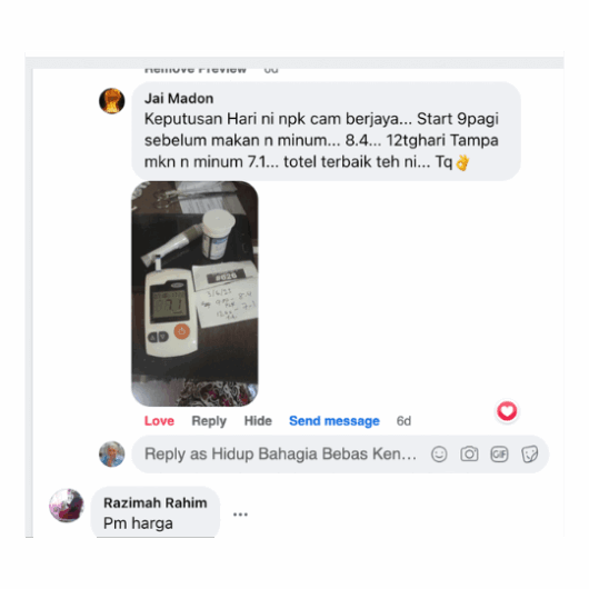 *PENAFIAN: Keberkesanan produk ini bergantung kepada kesesuaian individu. Setiap hasil dari penggunaan adalah berbeza bagi setiap individu. Produk ini akan memberi kesan terbaik sekiranya pengguna mengamalkan dengan cara betul berdasarkan banyak testimoni yang diperolehi. Kita berikhtiar, Tuhan yang menyembuhkan. Pengguna dinasihatkan menggunakan produk ini seperti arahan pada produk. Namun kami tidak bertanggungjawab jika sebarang masalah/komplikasi berlaku kepada pengguna di atas penggunaan produk ini