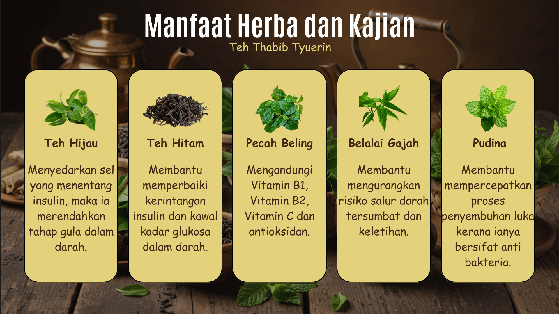 Tidak. Teh Thabib Tyuerin hanya mengandungi 5 herba premium iaitu: